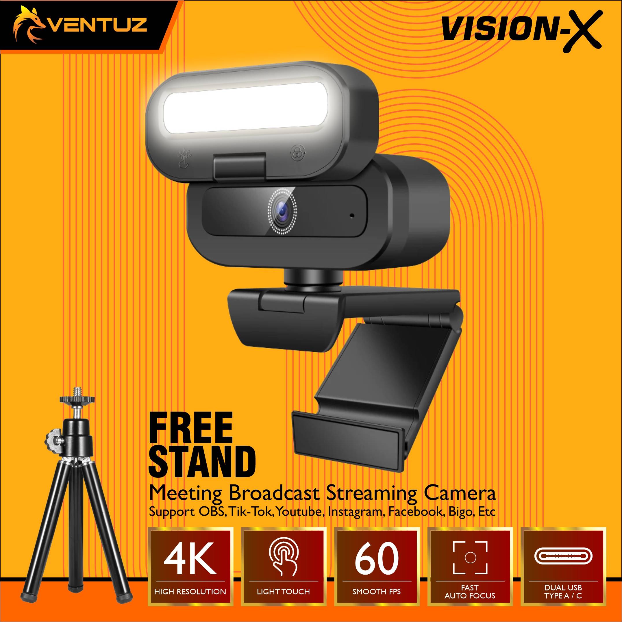 Ventuz – VISION X 2K/4K Autofocus Meeting Broadcast Streaming Web Camera 60Fps + Touch lamp + Tripod